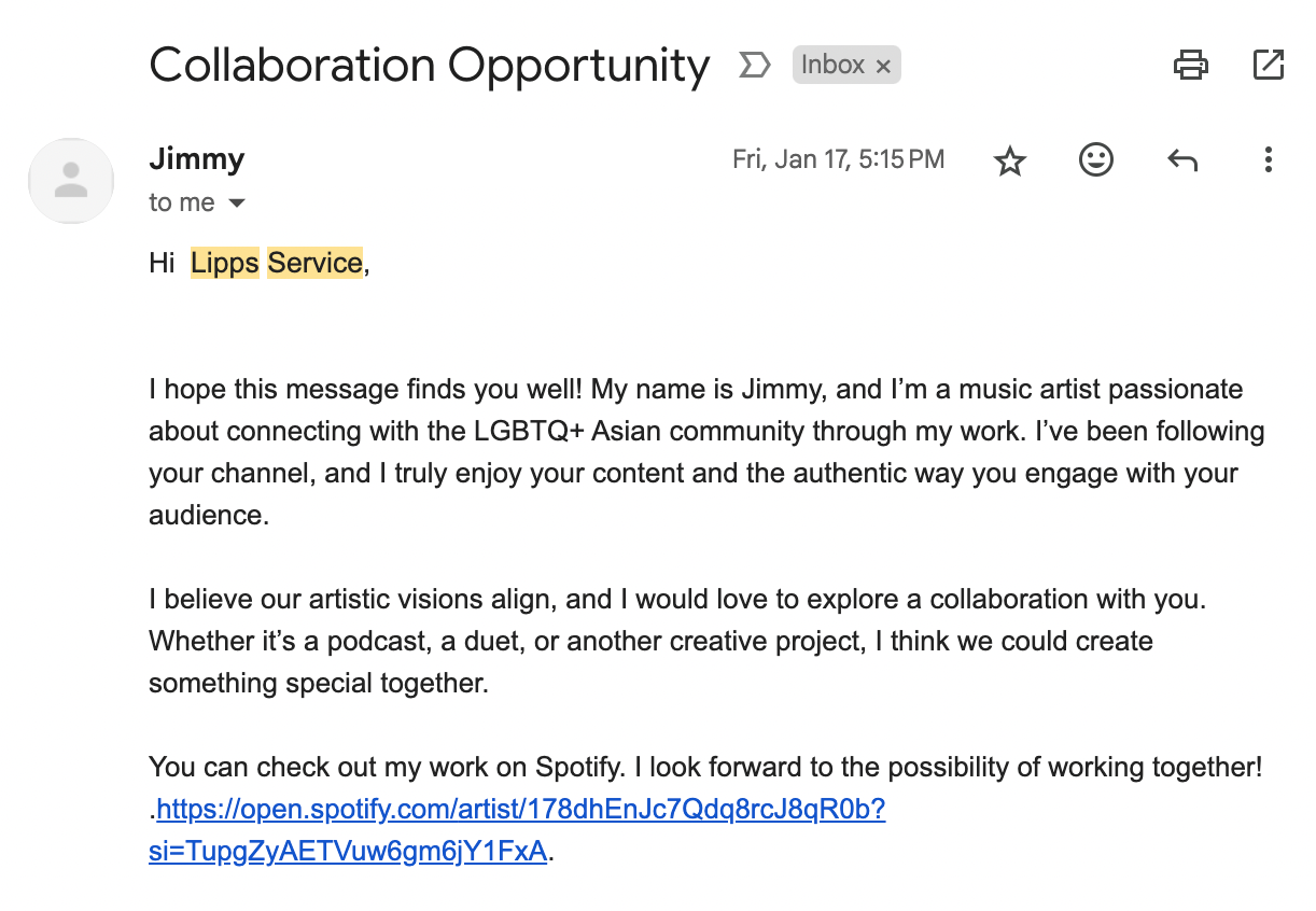 In case you’re wondering, here’s a real world example of an email that actually caught my attention. I’m still deciding whether I love this band, but their approach isn’t too shabby at all.