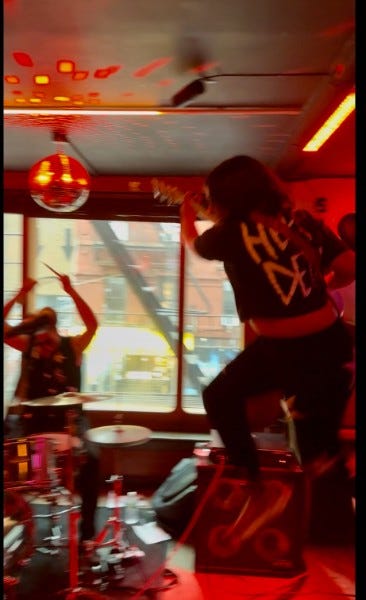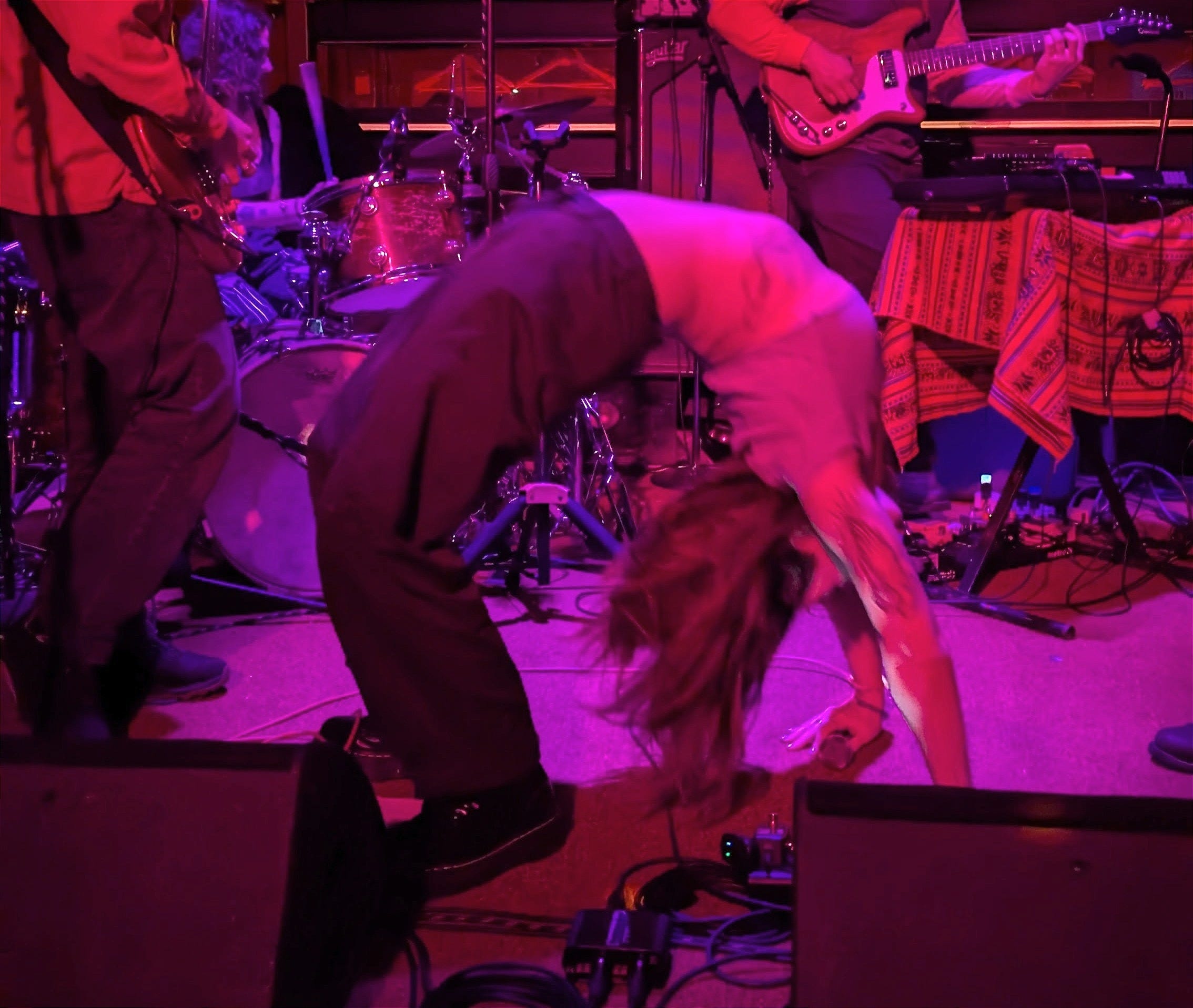 By showtime, a dozen more damp patrons filtered in. MK announced they were going to give all of us a great show — and immediately dove into a backward handstand before the band absolutely demolished their set.