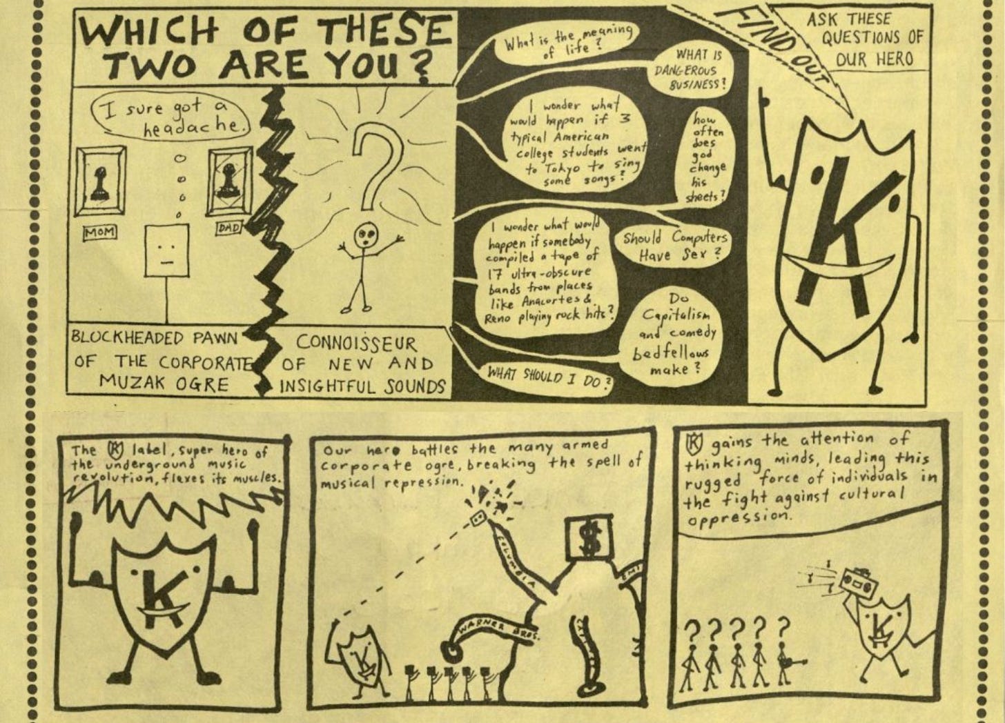 Inside twee are two wolves - one light, represented by Sarah Records, and one dark, represented by K Records, the brainchild of Beat Happening’s frontman Calvin Johnson. Beat Happening is the mascot of the punk-leaning, almost comically under-produced, sardonic, off-kilter, and often off-key path. The xeroxed zine come to life. The stylistic choice was quite intentional (Mark Lanegan co-produced this particular record, in fact). You’ll hear whispers of other eventually influential PNW genres starting to form: riot grrrl and grunge, most notably. For an infinitely rewarding rabbit hole, I highly suggest following all of Calvin Johnson’s threads — off to bands like Tiger Trap his short lived proto-riot grrrl label mates/signees (who would later spin off into The Softies, among others), then Bratmobile, their collaborators who debuted at Johnson’s International Pop Underground Convention in 19916, and off to Bikini Kill who shared the same stage… and on and on. I think you can write the rest.